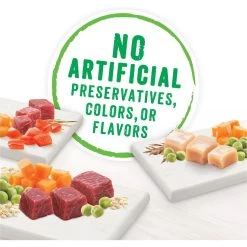 - This 12-count Beneful Chopped Blends dog food variety pack is proudly produced in Purina-owned, U.S. facilities with no artificial colors, flavors or preservatives.