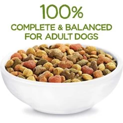 - Features USA farm-raised chicken as the number one ingredient and this naturally delicious premium food includes accents of real apples, carrots and green beans.