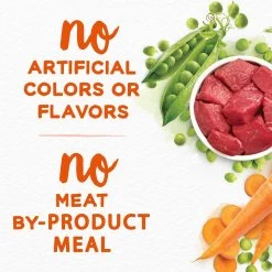 - Real farm-raised beef is the very first ingredient, along with real peas and carrots you can see.