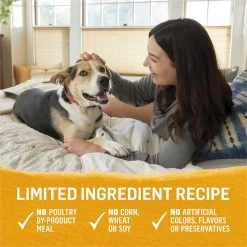 - Free of poultry by-product meal or artificial colors, flavors or preservatives.