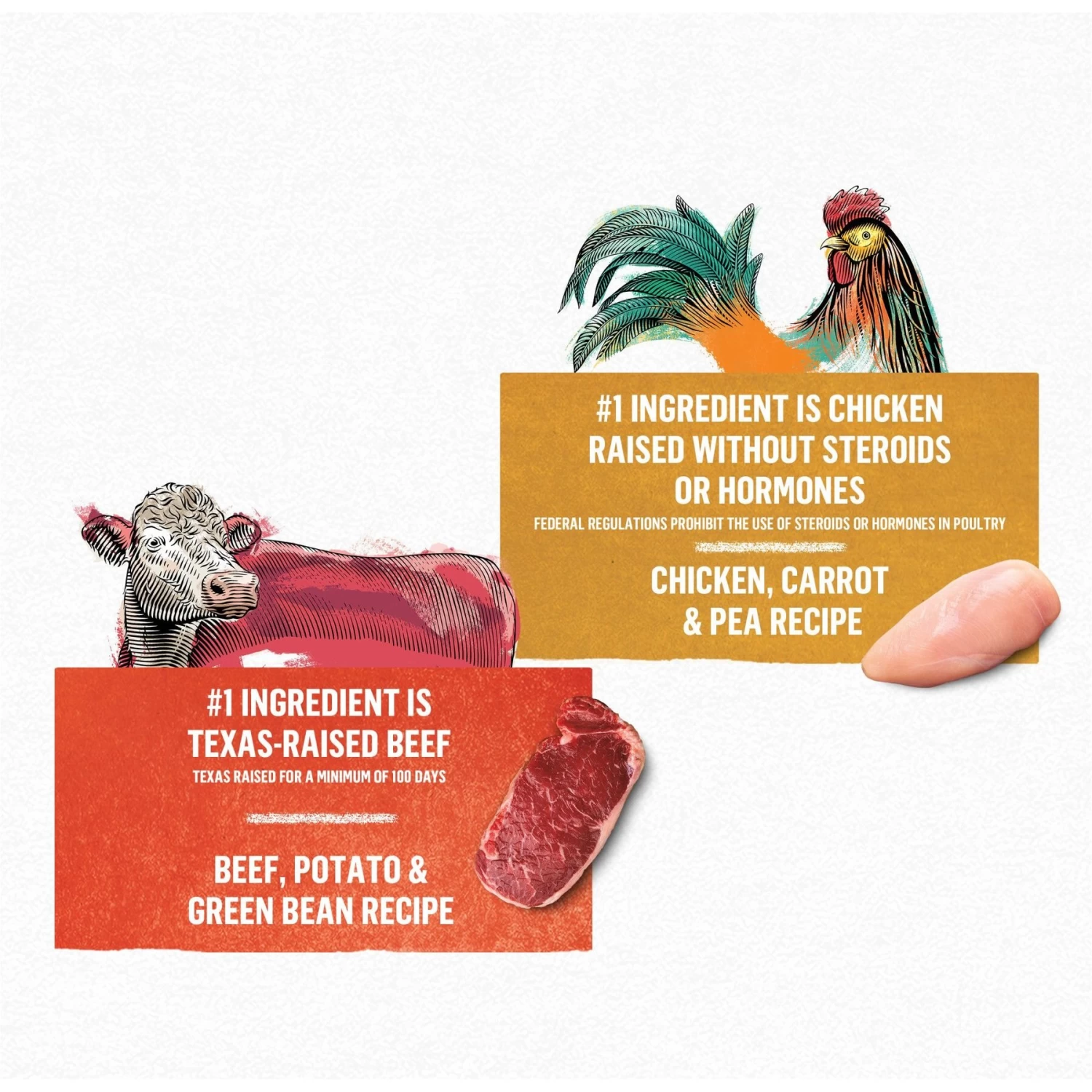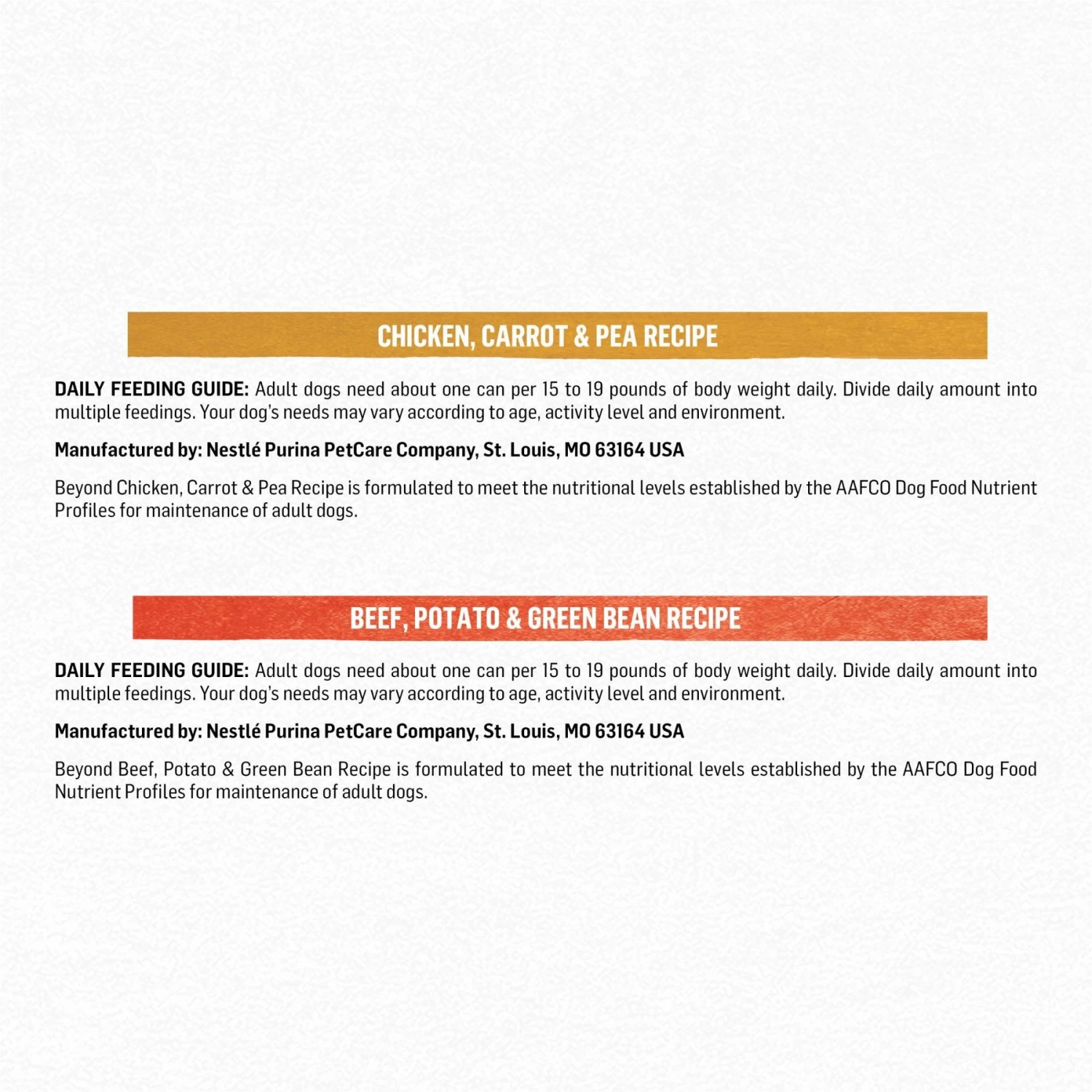 With the Purina Beyond Chicken, Beef and Cod Ground Entree Grain Free Wet Dog Food Variety Pack, your furbaby will enjoy three yummy recipes for paw-some mealtime variety. The pack features a Texas Beef, Potato and Green Bean recipe, an Alaskan Cod, Salmon and Sweet Potato recipe and a Chicken, Carrot and Pea recipe. All three recipes feature real, recognizable ingredients from trusted sources. Real farm-raised beef, Alaskan cod or chicken is the first ingredient in each recipe, plus there are plenty of veggies like carrots, peas and green beans for wholesome, tasty flavor. Added vitamins and minerals support your furbaby’s nose-to-tail wellbeing. These recipes are free of corn, wheat and soy, and they contain no artificial colors, flavors or preservatives, so you’ll be giving your best friend pure, natural nutrition – nothing more.