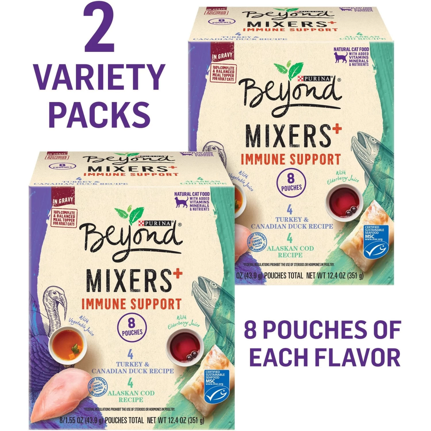 Purina Beyond Mixers+ Immune Support Variety Pack Wet Cat Food, 1.55-oz Pouch, Case Of 8