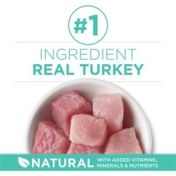 - Real turkey is the first ingredient, helping create a high protein cat food that supports your four-legged pal’s strong muscles, including her healthy heart.