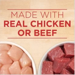Give your dog delicious mealtime choices with this Purina ONE SmartBlend Tender Cuts adult wet dog food variety pack. Two tempting recipes feature beef or chicken for the tastes dogs love, and the tender bites provide a texture they can’t resist. Featuring a SmartBlend of ingredients for complete and balanced nutrition, this collection of wet dog food lets you rest easy knowing your dog is getting a high-quality meal at feeding time. Each recipe is high in protein to help support his strong muscles, and 0% fillers means all of our high-quality ingredients have a purpose. This variety pack offers highly digestible formulas so more nutrition goes to work inside your dog. Satisfy his cravings for delectable meals, and rest easy knowing he’s getting the wholesome nutrition he deserves with selections from this SmartBlend variety pack.