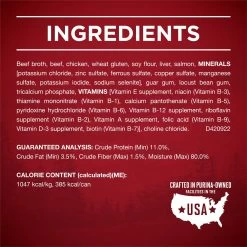 - Natural formula with added vitamins for dogs plus minerals and nutrients is made with real beef and wild-caught salmon.
