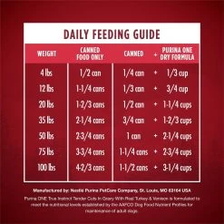 Dish up a helping of savory poultry flavor with Purina ONE Natural True Instinct Tender Cuts in Gravy With Real Turkey and Venison Adult Wet Dog Food with added vitamins, minerals and nutrients. This high protein dog food is made with real poultry as the first ingredient, along with real venison and other high-quality ingredients. There are no poultry by-products in this nutritious natural gravy dog food recipe with added vitamins, minerals and nutrients. The tender, meaty cuts and delicious gravy combine to give your pooch the taste that’s sure to have his tail wagging. This wet dog food gravy recipe includes high protein in every serving to help support your canine companion’s strong muscles to help him jump and play during your adventures together. Fill his dish with this soft dog food at feeding time, and provide 100% complete and balanced nutrition for nose-to-tail well-being for your adult dog and 0% fillers. Every ingredient has a purpose.