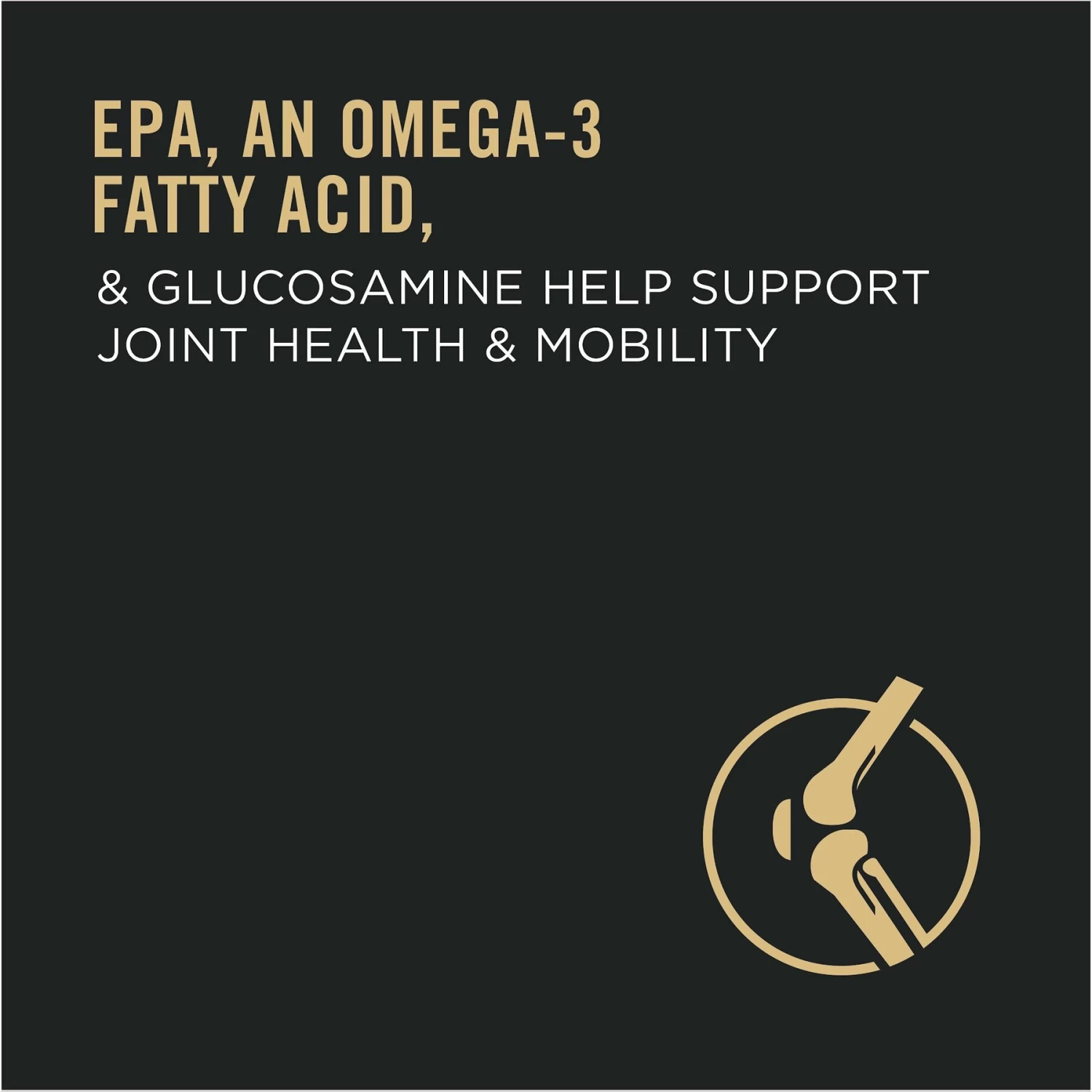 - EPA, an omega-3 fatty acid, and glucosamine help support his joint health and mobility