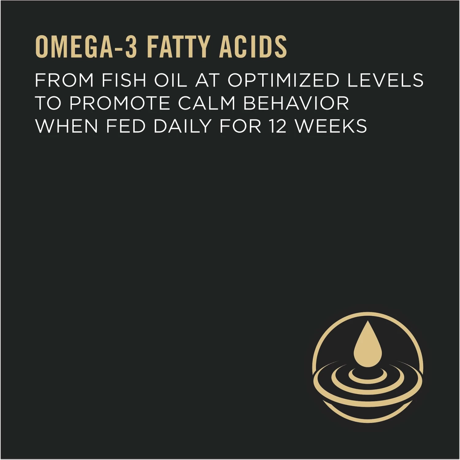 - Purina Pro Plan Adult Dog Food for small breeds under 20 pounds at maturity, featuring Omega-3 fatty acids at optimized levels helps promote calm dog behavior when fed daily for 12 weeks.