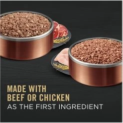 - Pups choose from two high quality dog food recipes, each with real chicken or beef as the number1 ingredient for a taste dogs adore.