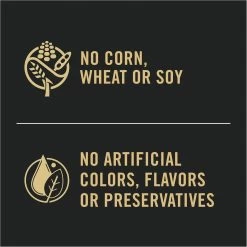 - No corn, wheat, soy, artificial colors, flavors or preservatives.