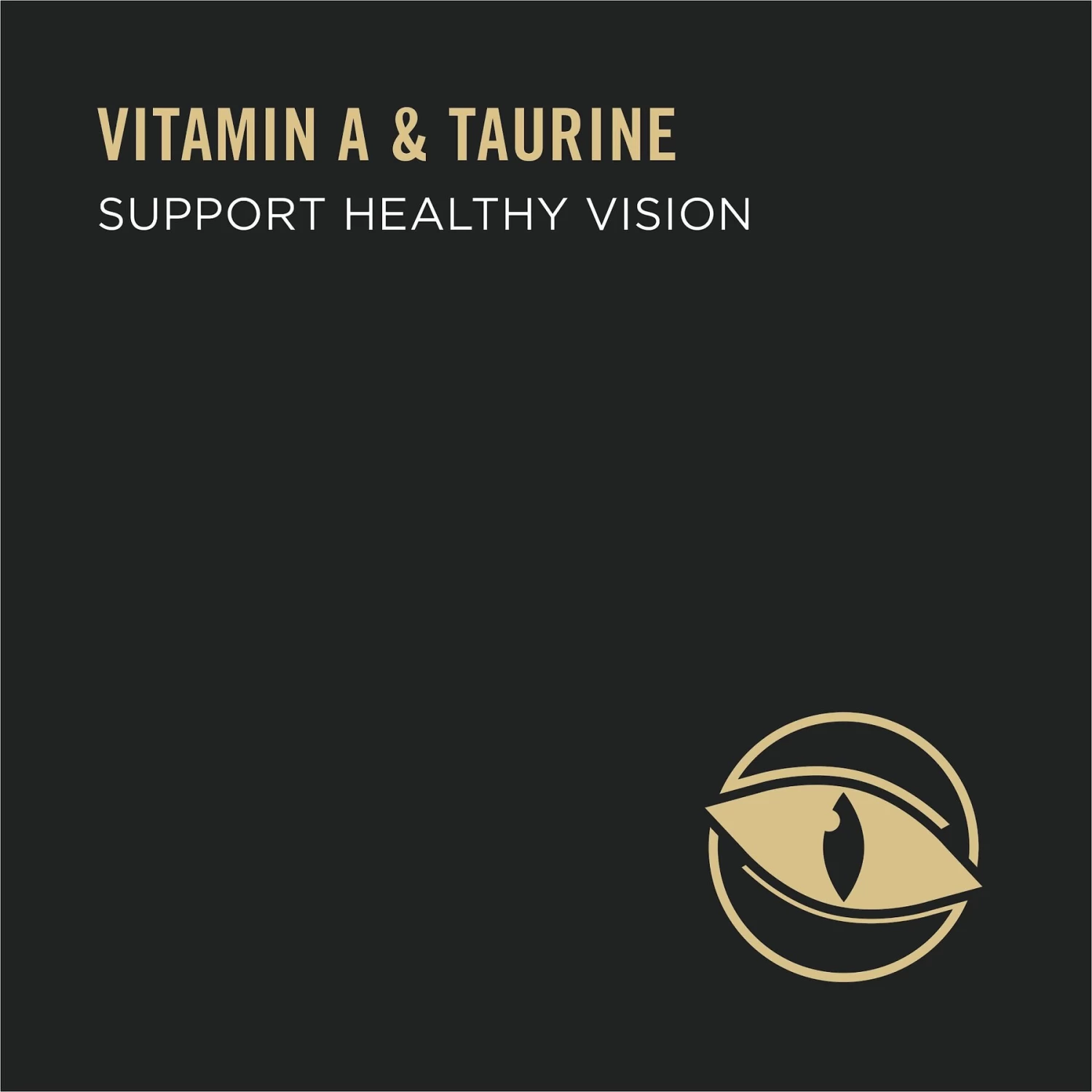 - This adult cat food is loaded with 25 essential vitamins and minerals, including vitamin A and taurine, an amino acid, to support her healthy vision as she explores her world.