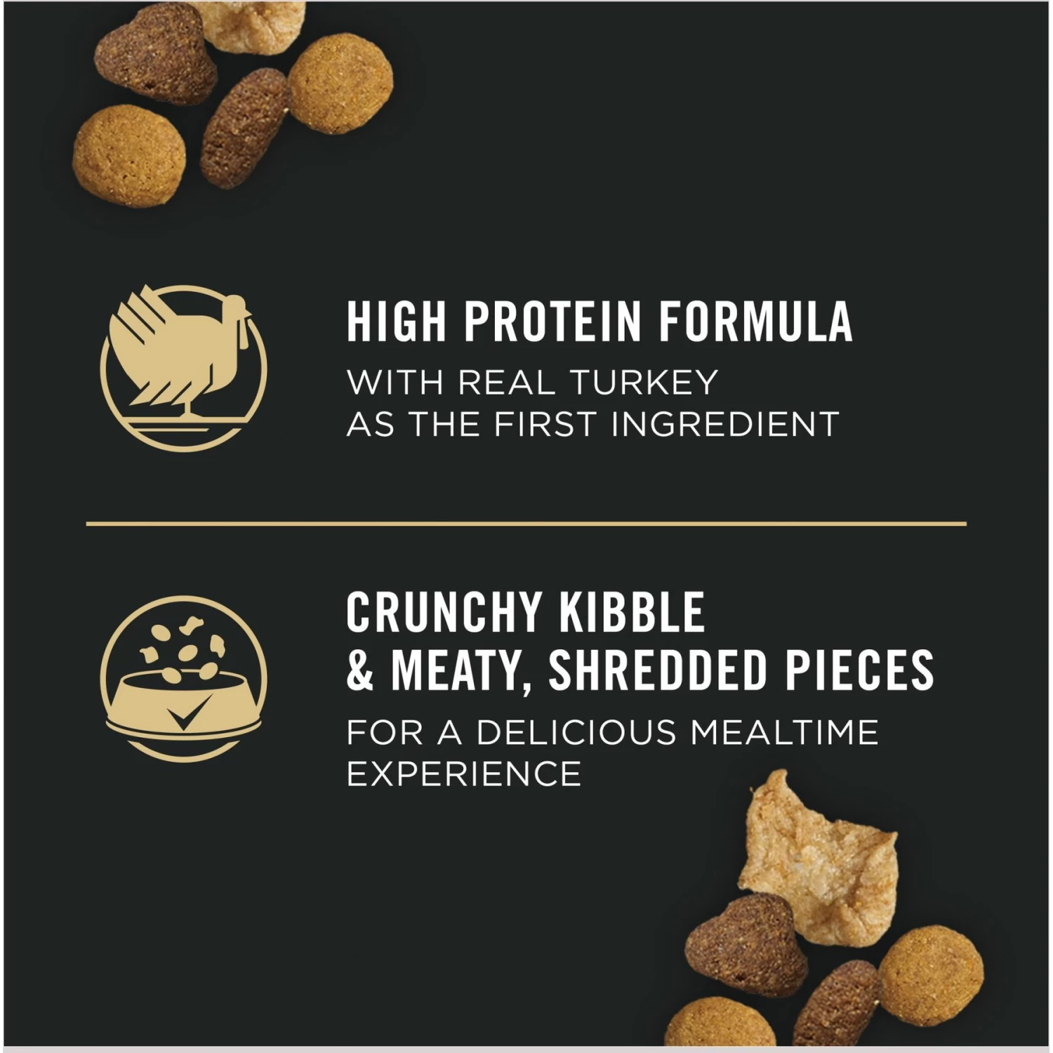 - High-protein food starts with real turkey as the first ingredient and is packed with wholesome nutrition.