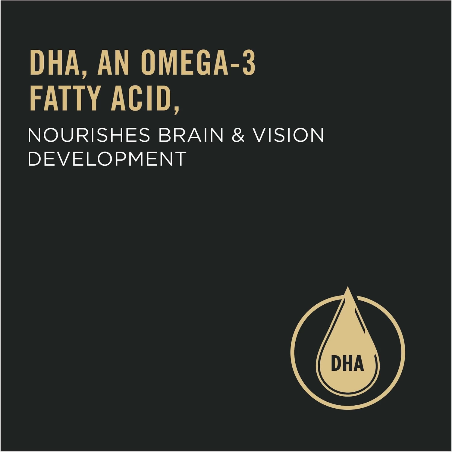 - DHA, an omega-3 fatty acid, helps nourish brain and vision development.