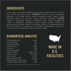 - Real turkey and giblets help create a yummy grain free pate cat food that’s loaded with protein, supporting your pal’s ideal body condition throughout a lifetime of adventure.