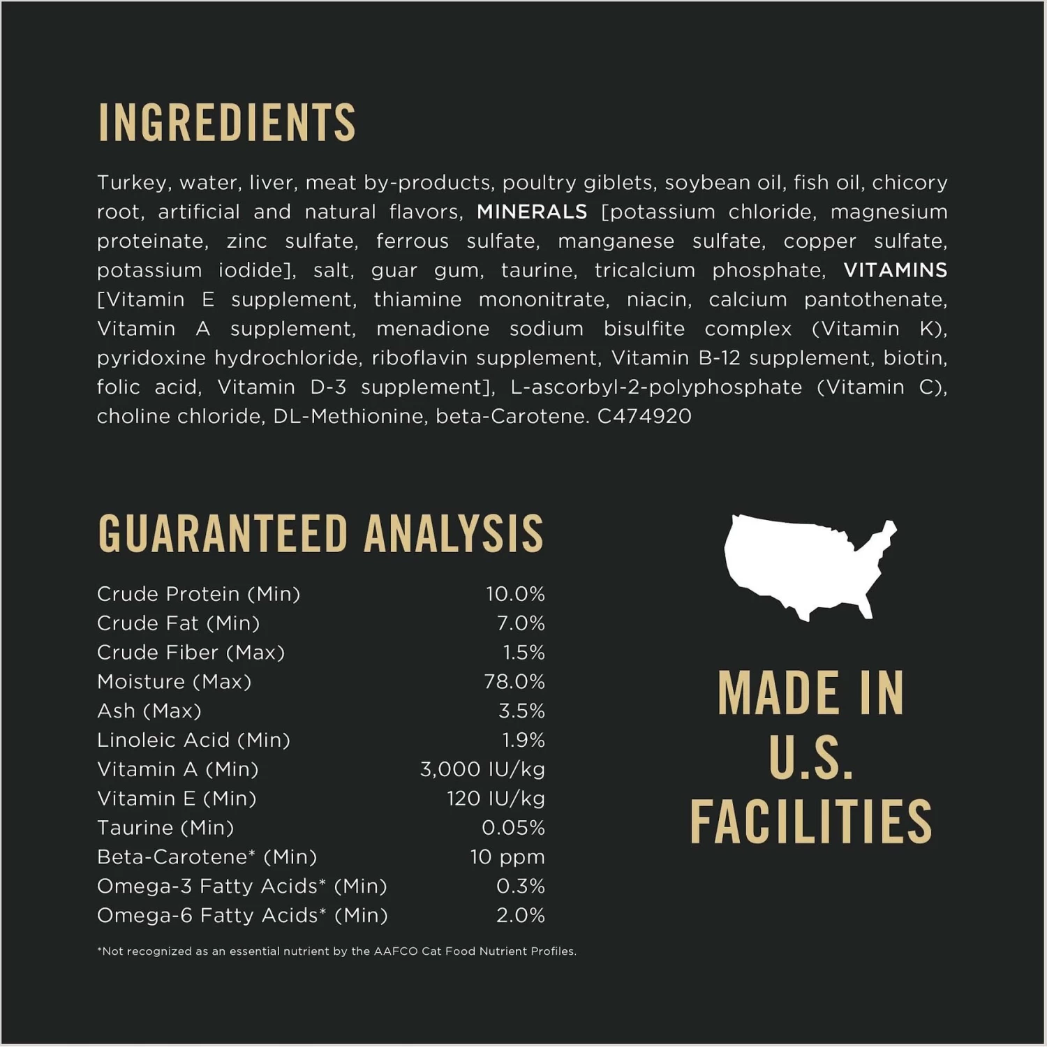 - This high protein wet cat food pate is proudly manufactured at Purina-owned, U.S. facilities with no artificial colors or preservatives.