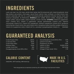 - 100% complete and balanced nutrition with lamb as the first ingredient.
