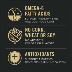 - Puppy food features salmon as the #1 ingredient and includes rice to be gentle on your pal’s sensitive stomach.