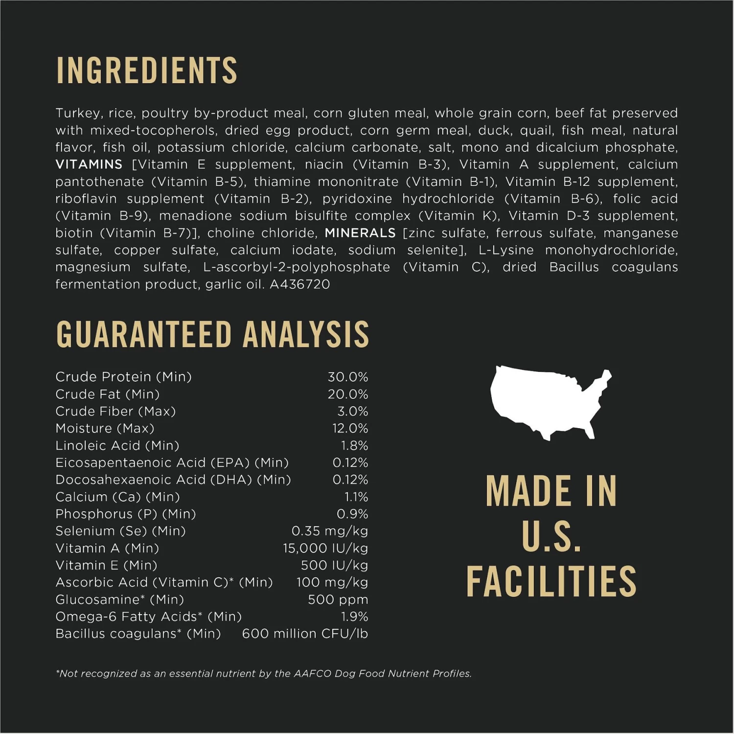 - High-quality performance dog food formulated with real turkey as the first ingredient.
