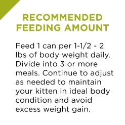 - This kitten canned cat food is made to support a kitten’s healthy growth and development in kittens up to one year old, giving your little girl a great start in life.
