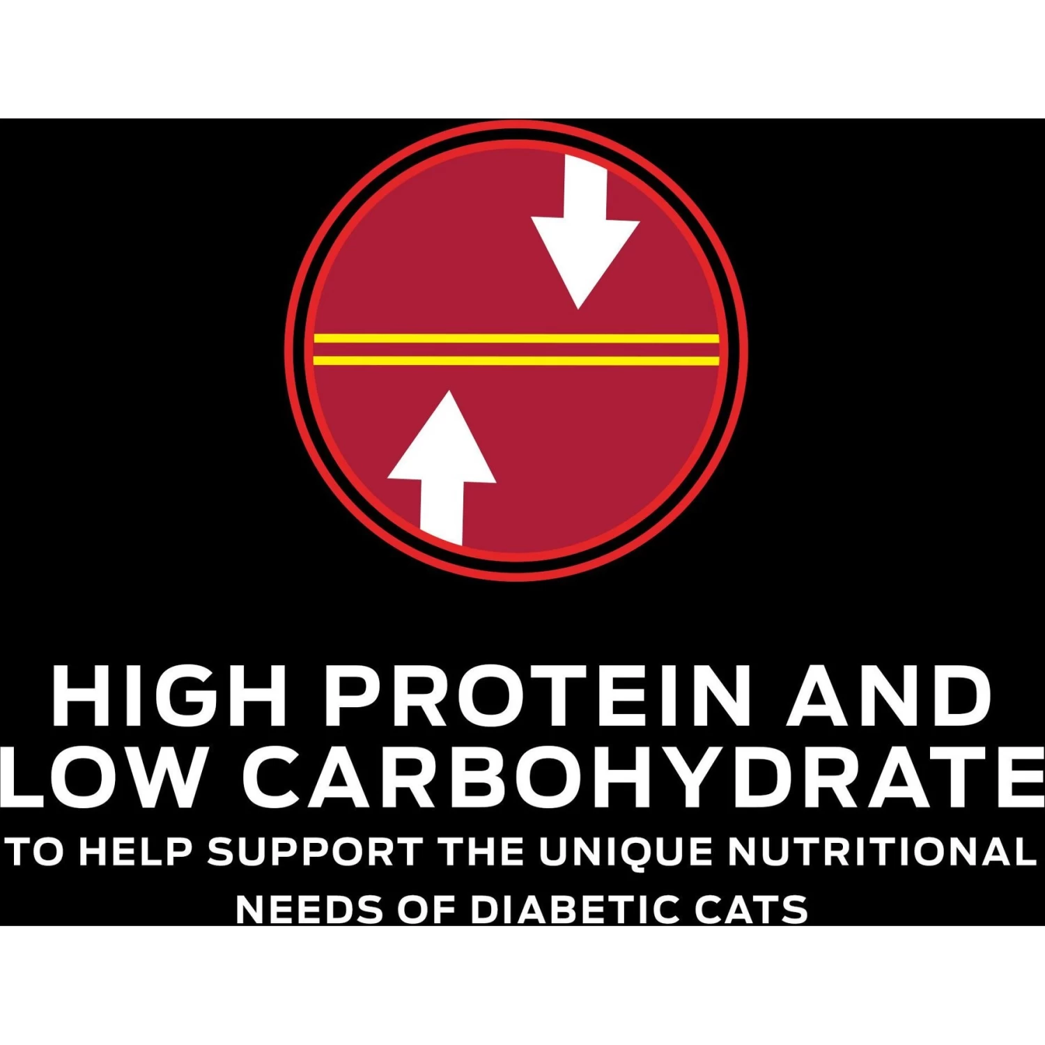 - Purina Pro Plan Veterinary Diets DM has been specifically formulated with high protein levels and low carbohydrates to support the nutritional needs of diabetic cats.