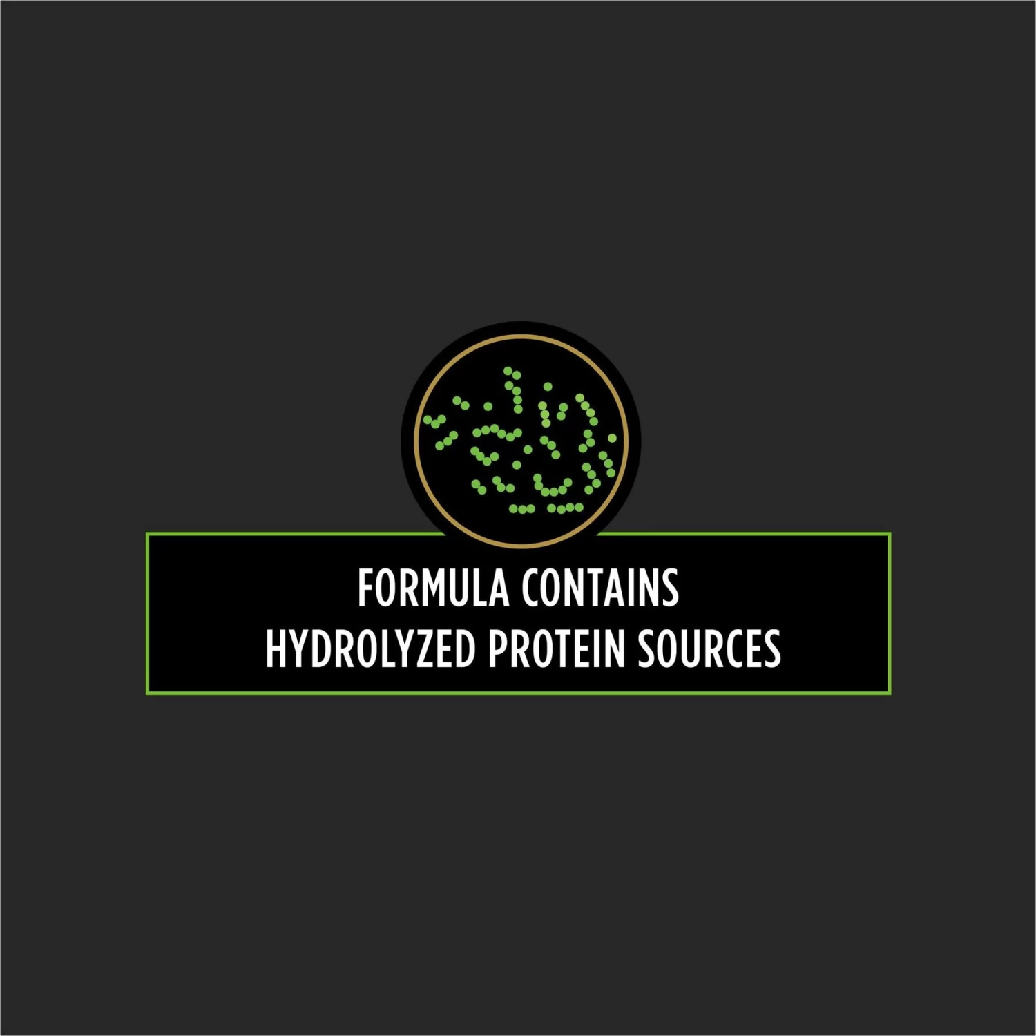 - Formula contains hydrolyzed protein sources—these are proteins that are broken down into tiny components for dogs who are sensitive to protein.