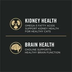 - High-protein cat food featuring vitamins for cats to support immune health, omega-3s for kidney health, choline for brain health, plus prebiotic fiber for digestive health.